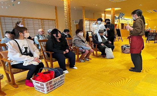11月8日(金)、福島市飯坂町にある日帰り温泉「花ももの湯」で温泉とランチバイキングを楽しみました。ゆったりした広いお風呂場でゆっくり温泉につかり、心身ともにくつろぐことができました。お昼は待ちに待った「ランチバイキング」。普段、「杜の笑」でも選択メニューを定期的に行っていますが、ランチバイキングの品数豊富さに、皆さん大満足。笑顔があふれる美味しい時を過ごしました。